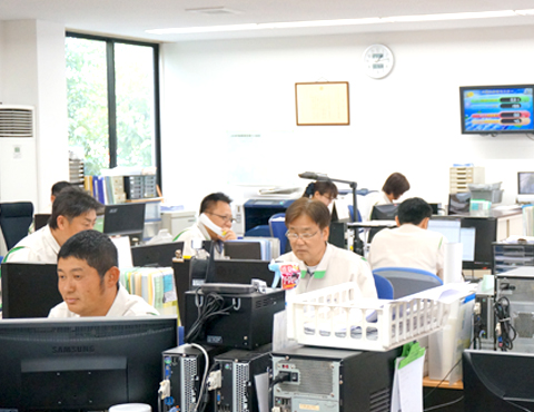 輸送部門を支えるのは、高砂通運、高砂輸送サービス、菱高運輸の三社です。構内物流と運送・倉庫保管を連携させ一貫した流れをつくり、コストダウンを追求。突発的な事態にも対応できるよう、三社が互いにバックアップ体制をとっています。