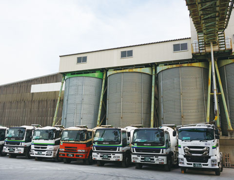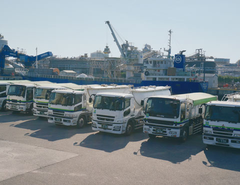 普通貨物自動車の運送事業は、月間延べ3000台のデリバリーに達しており、日本列島をカバーしています。高砂輸送サービスの自慢は、“仕事量の変動”や“突発的なニーズ”に対して、的確かつ迅速に対応できること。また、船舶で運搬されたバラセメントを、そのままサイロ倉庫に荷揚げ、顧客ニーズに合わせてタンクローリー車で播州エリア全域に輸送するタイムリー輸送は、高い評価を頂いています。